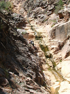 When I was doing my observations in the East Gate, a lot of people kept saying they were going to the "potholes" in Glade Park. They said it was some sort creek and swimming hole with a couple cool cliffs to jump. My neighbor, Palma, and I decided to go up there one day and see what all the fuss was about. It was a really cool spot and the jump was a good twenty feet. It took me a couple minutes to get up the confidence to jump, but once I did there was no stopping. And in the picture, you can't see where you land, you follow the arrow another 10 feet down. Although, this time I wasn't doing any backflips. The pictures below are looking downstream.